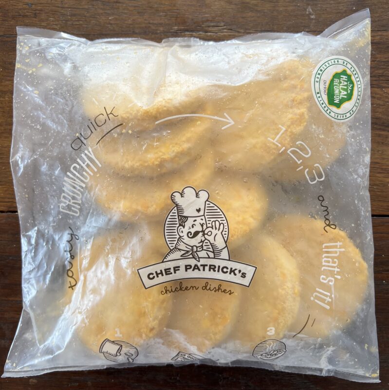 - Produits élaborés : produits panés Chef Patrick’s (tender, nugget, etc.), charcuterie (merguez, chorizo, lardon, jambon, etc.), steak haché, égréné, broche et lamelles de kebab poulet ou agneau, etc.